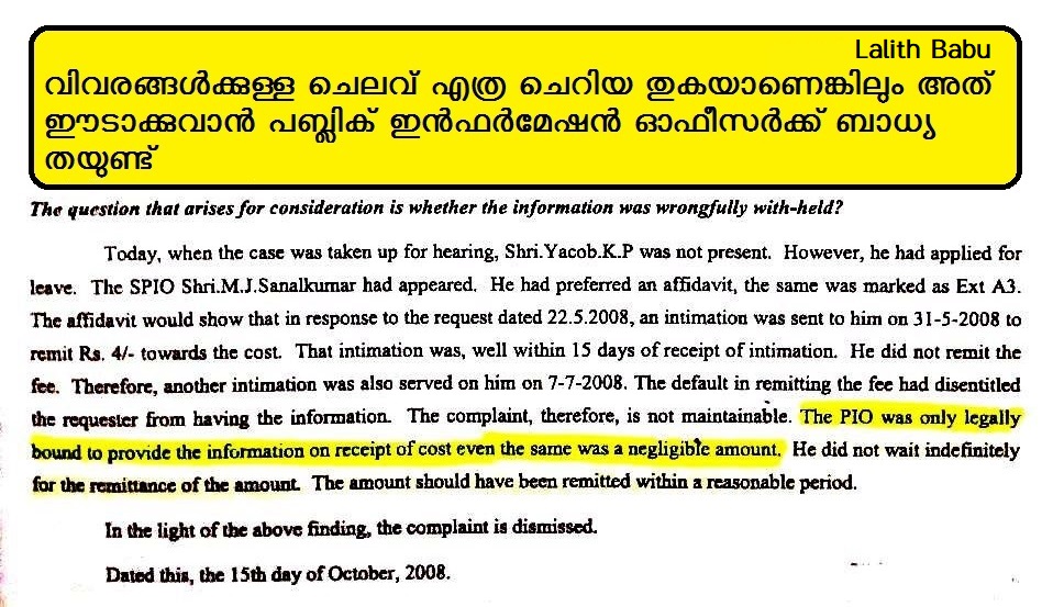 | (31) Cost- calculation ന്റെയും amount ന്റെയും വിവരങ്ങള് അപേക്ഷകനെ അറിയിച്ചിരിക്കണം |